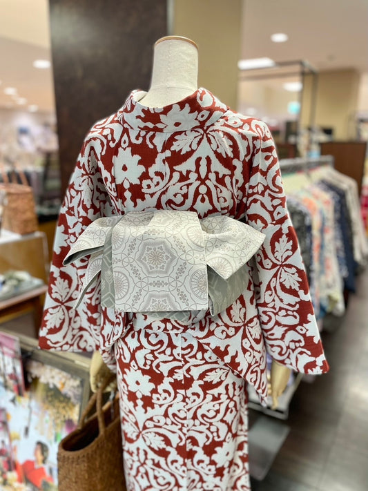 セオアルファ三部式ゆかた アラベスク赤(夏衿・襦袢袖付き)