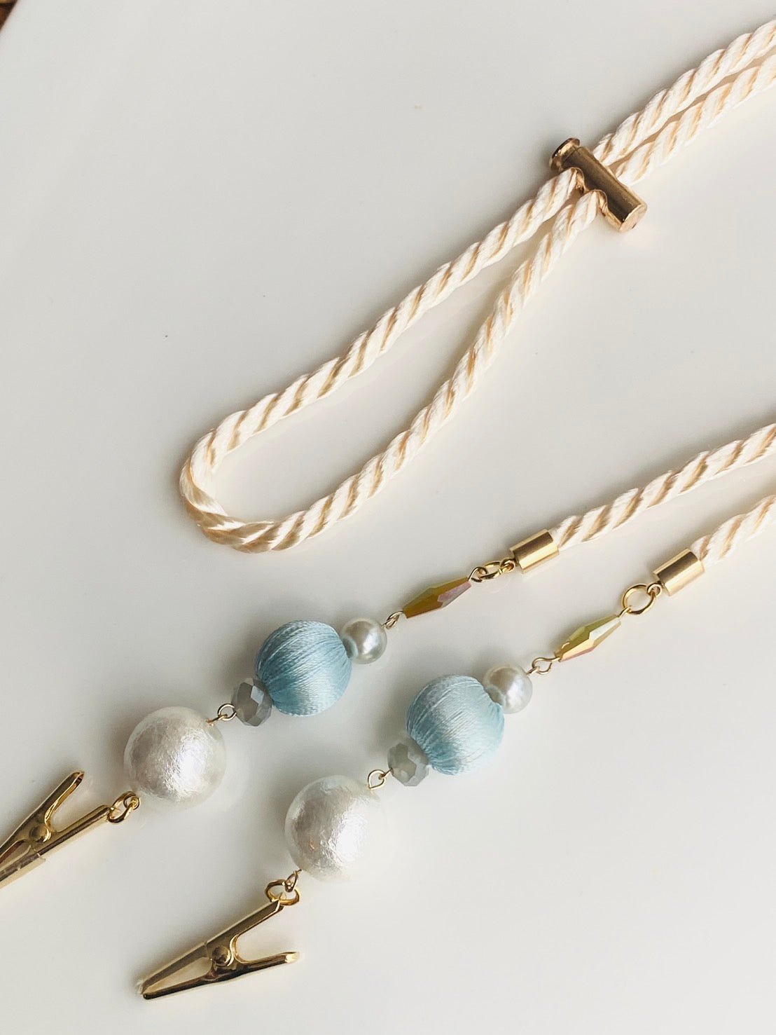 また、お食事の際のナプキン留めとしても。袂クリップを、首にかけて食事の際のナプキン留めとしても使用できます。