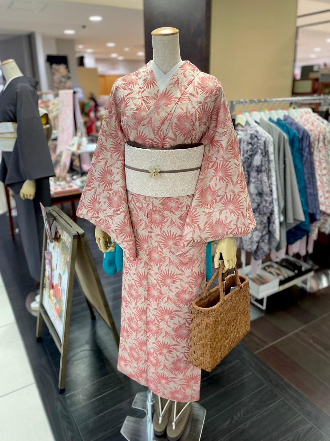三部式なので、自分で着物を着るのに自信のない方や、初めて着物にチャレンジされる方にも、簡単にお召しいただくことができます。