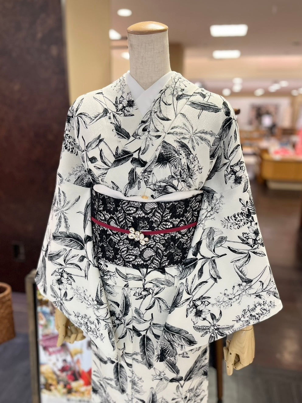三部式なので、自分で着物を着るのに自信のない方や、初めて着物にチャレンジされる方にも、簡単にお召しいただくことができます。