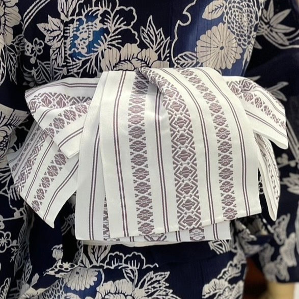 ふんわりと立体感のある半巾の文庫結びにかぶせを付けたdriccoオリジナルの造り帯。