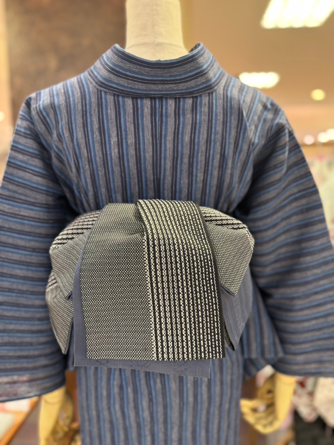帯は毎年好評いただいています、ふんわりと立体感のある半巾の文庫結びにかぶせを付けたタイプと、半巾帯をお太鼓風にアレンジした造り帯をご用意!