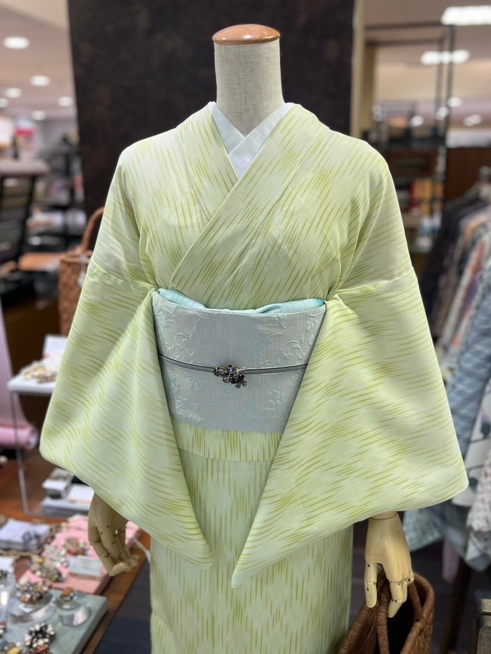 ・セオアルファ三部式ゆかた ぼかし格子ライムグリーン:¥66,000